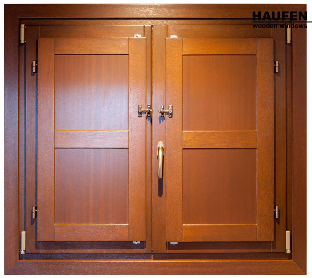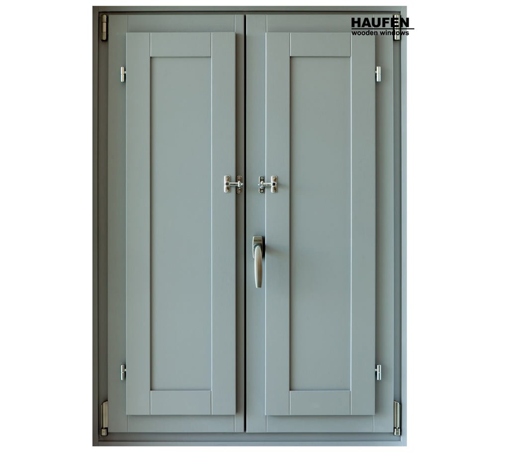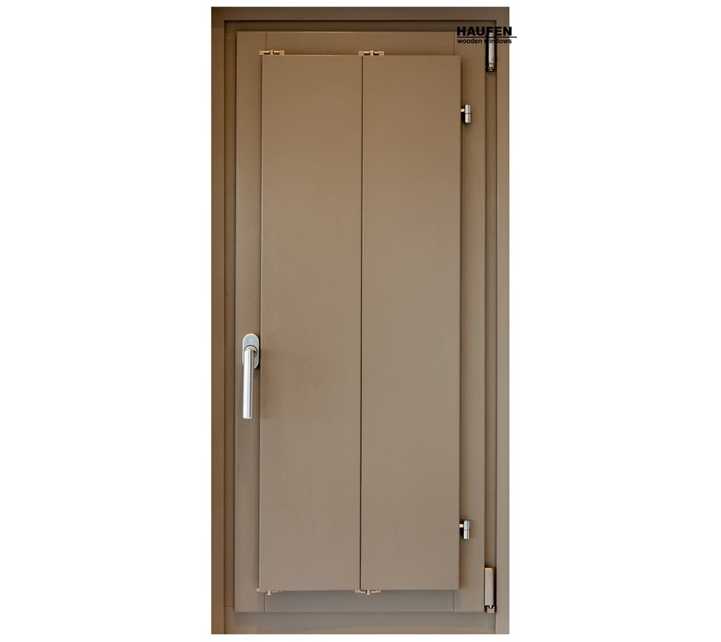 Shutters are hung on the ply with light hinges and locked with a mechanical or magnetic metal closure.