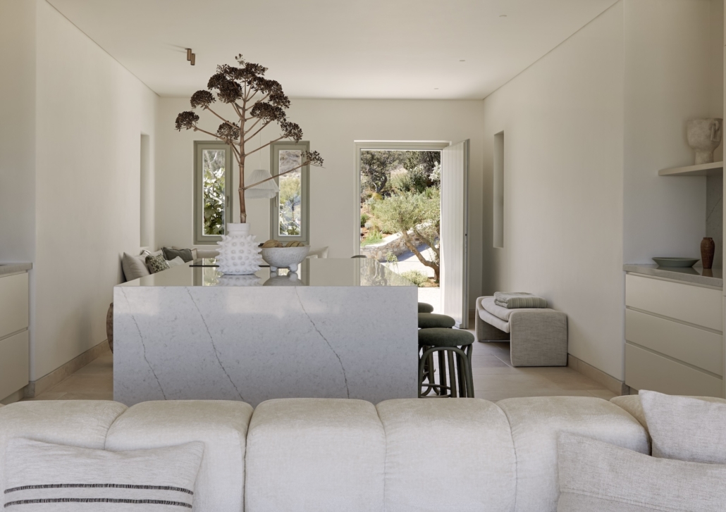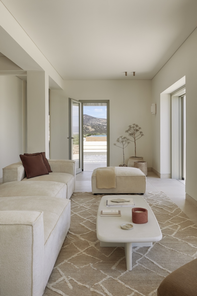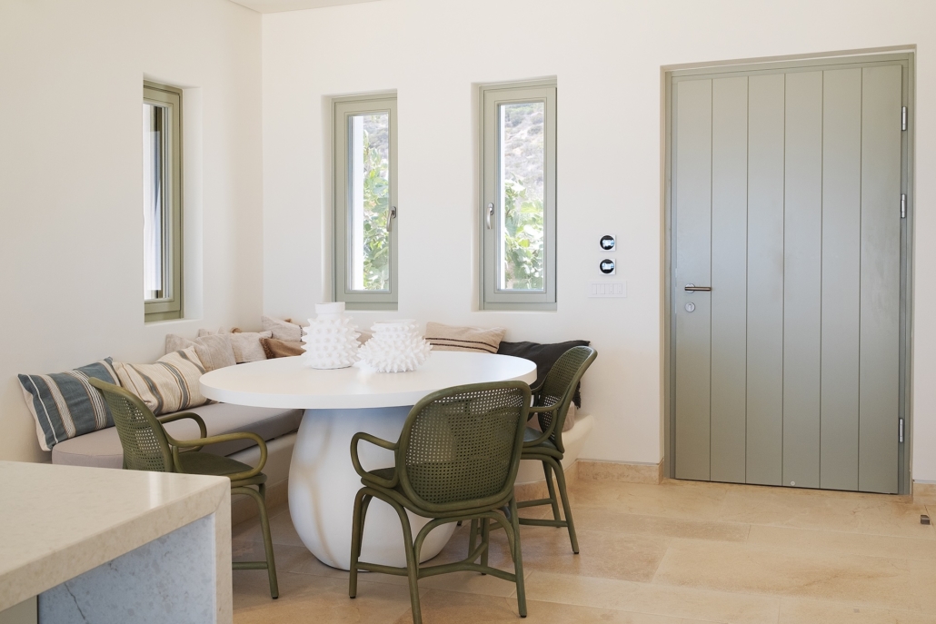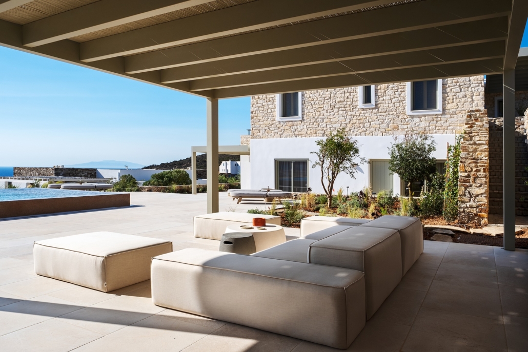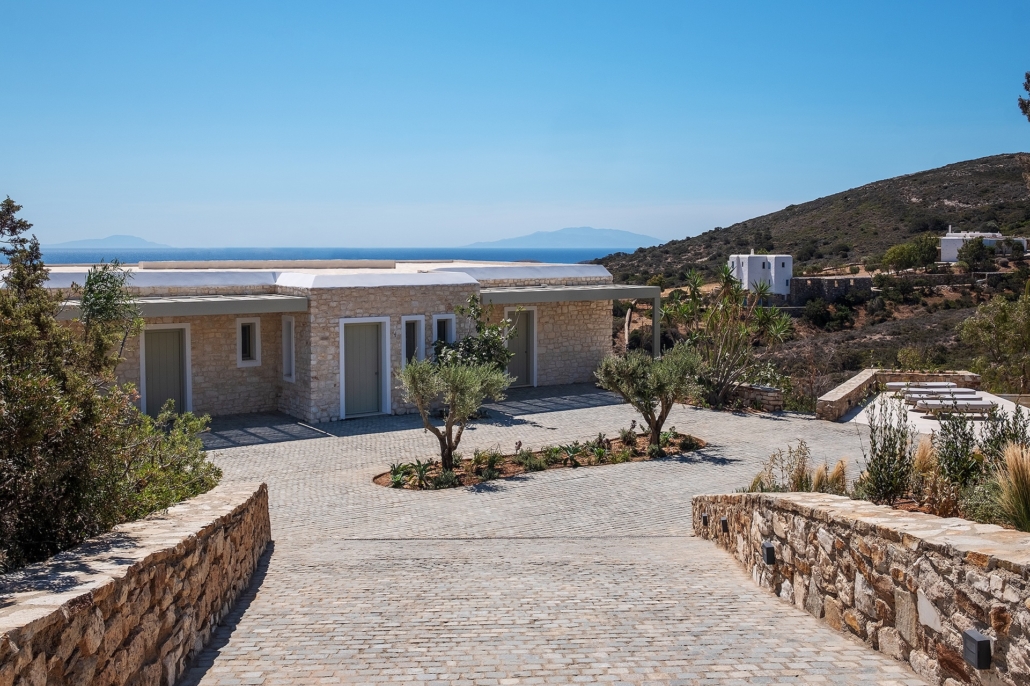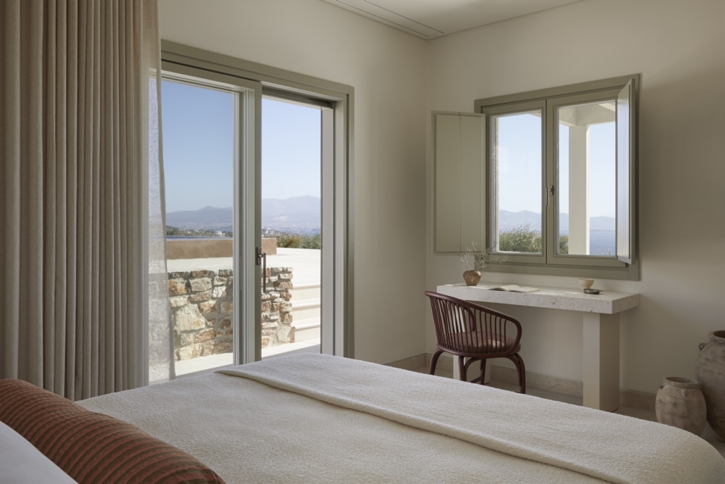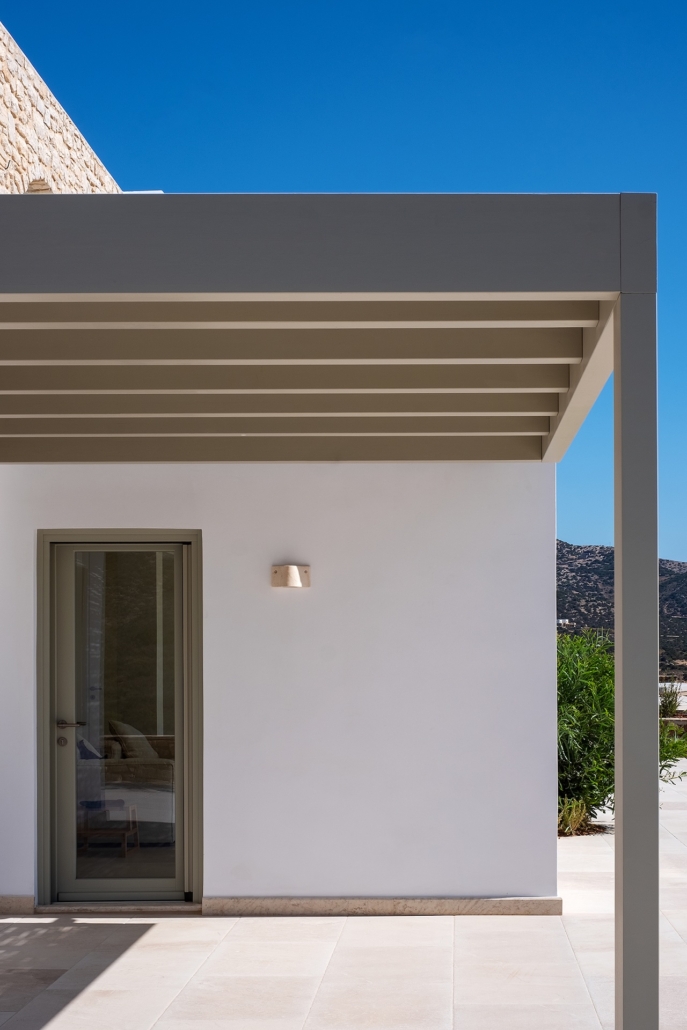An impressive, luxurious holiday residence in Antiparos, featuring HAUFEN® wooden frames and the Italian Ponzio’s minimal arched aluminum system from the WS75IL series.
