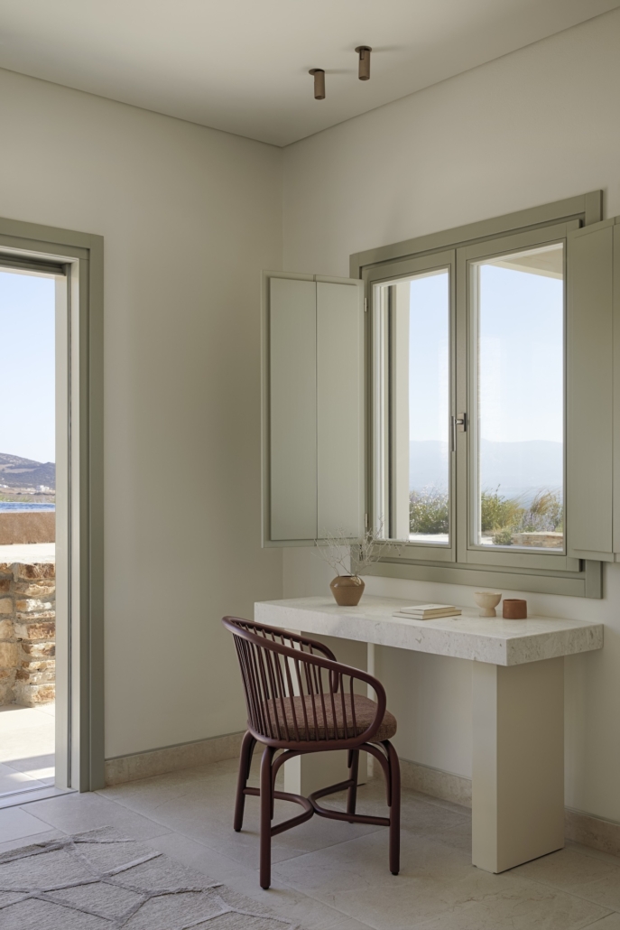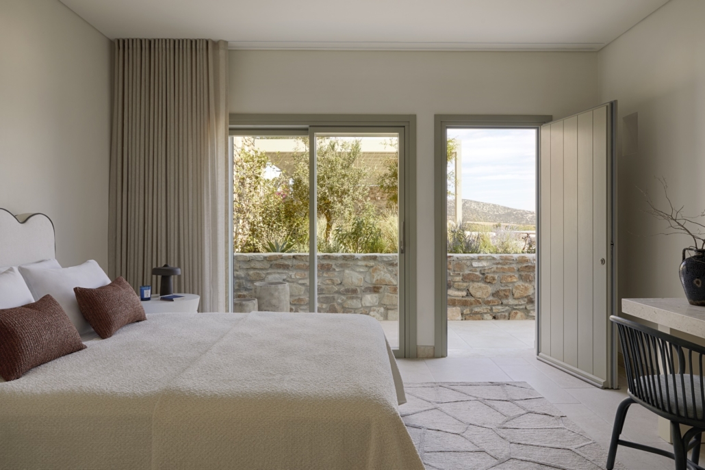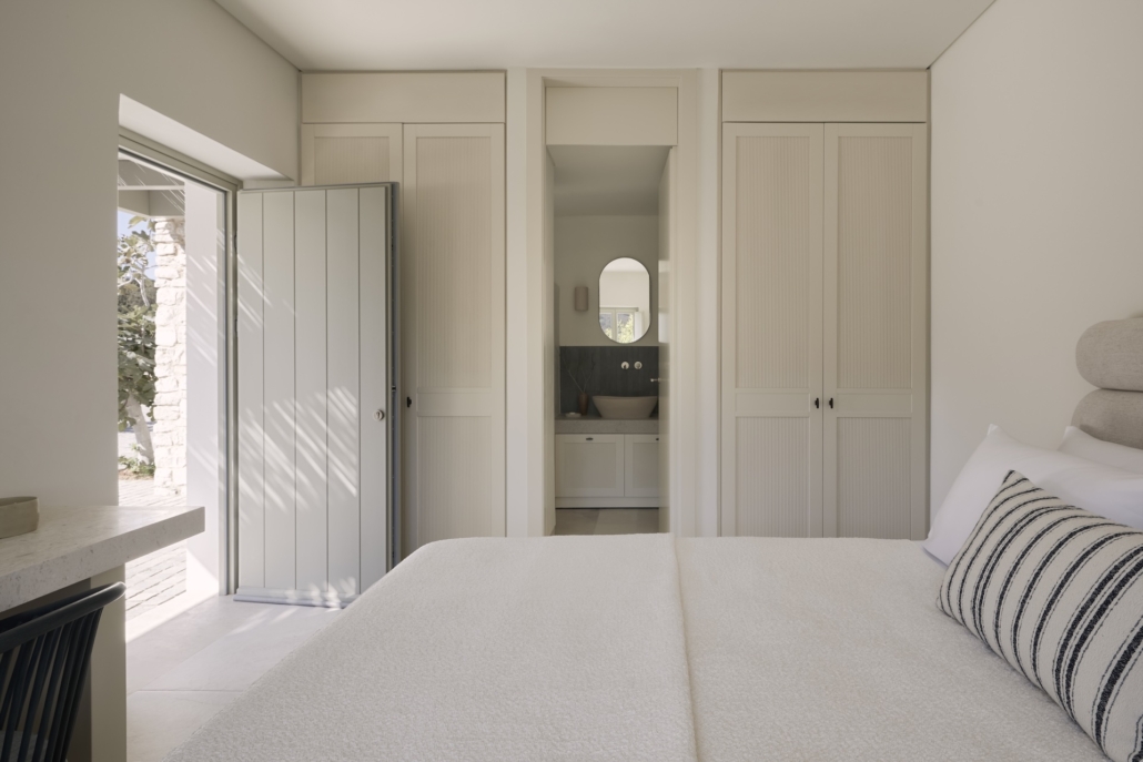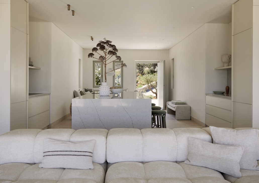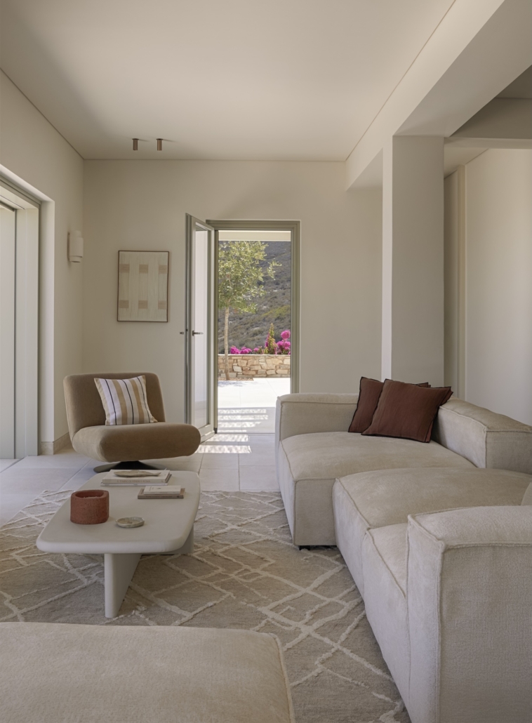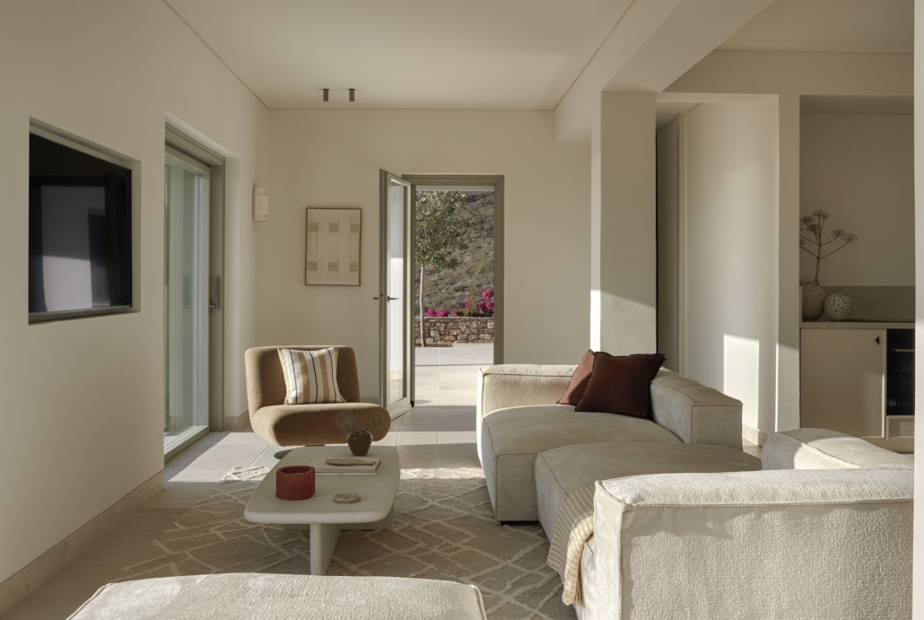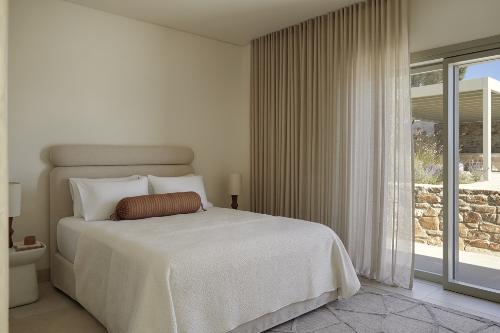 An impressive, luxurious holiday residence in Antiparos, featuring HAUFEN® wooden frames and the Italian Ponzio’s minimal arched aluminum system from the WS75IL series.