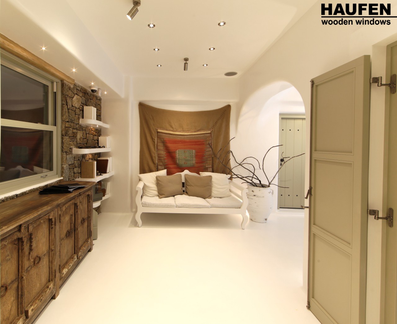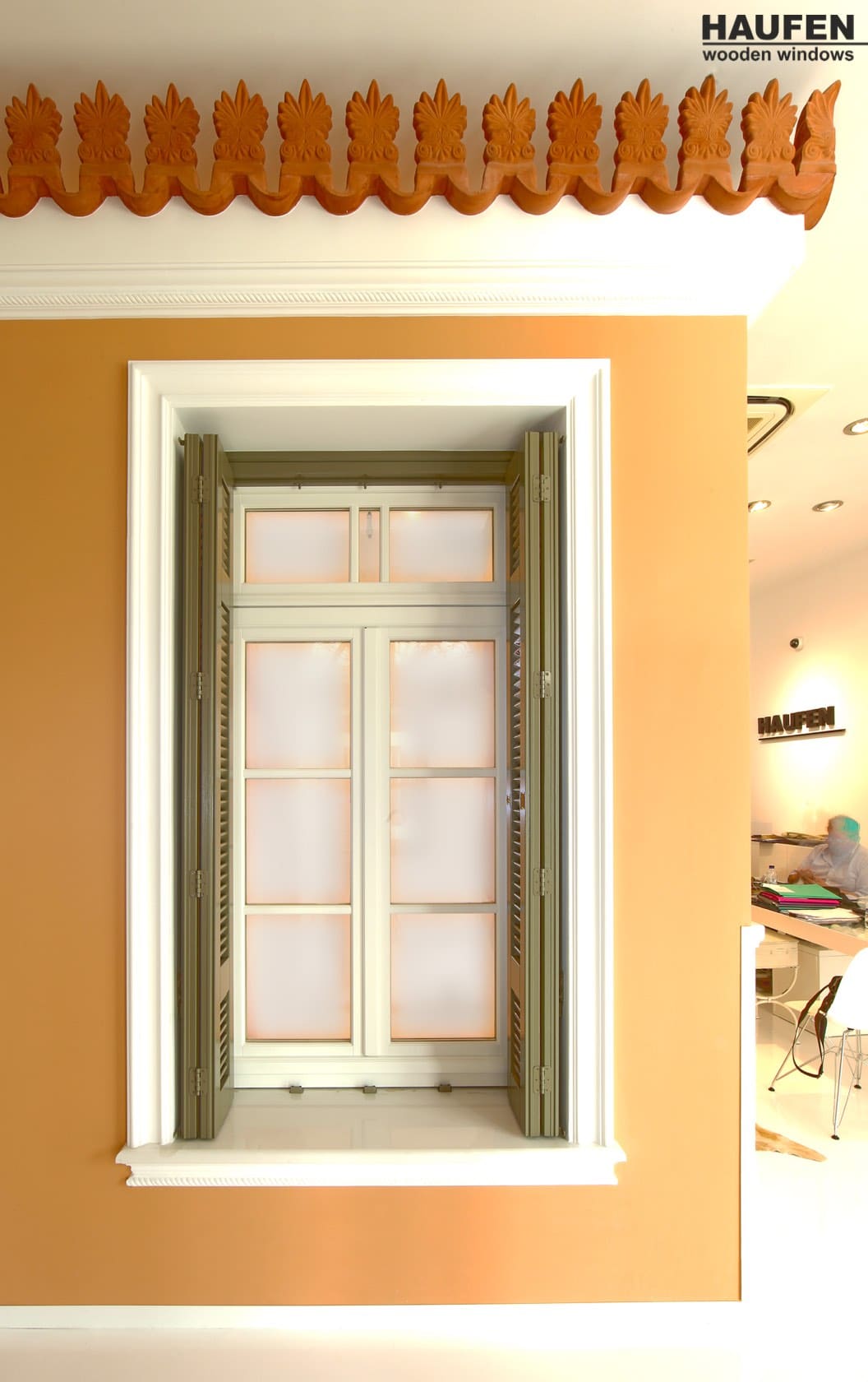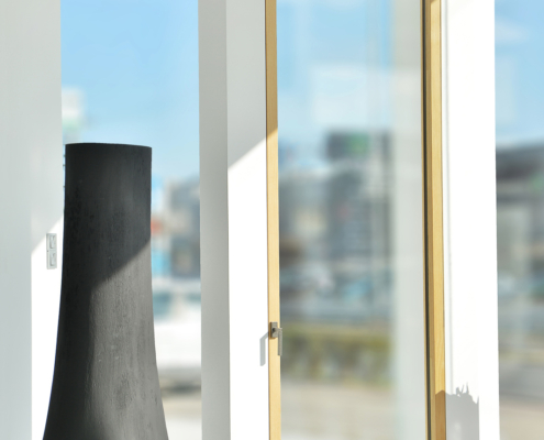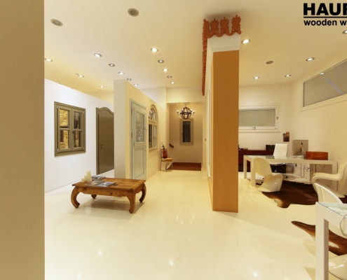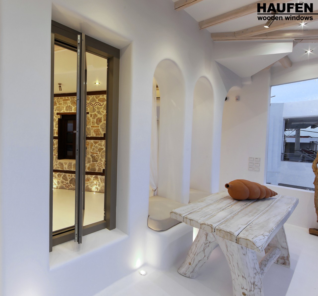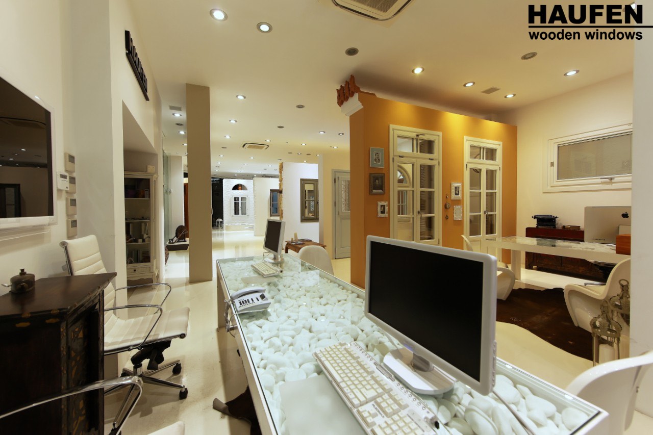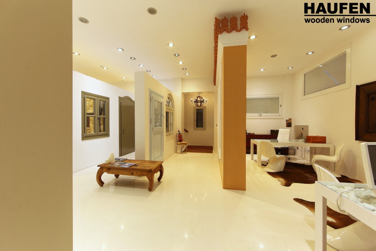 The space exudes the high quality and unparalleled aesthetics of the HAUFEN® wooden windows, as well as the confidence that the buyer derives from his cooperation with our company.