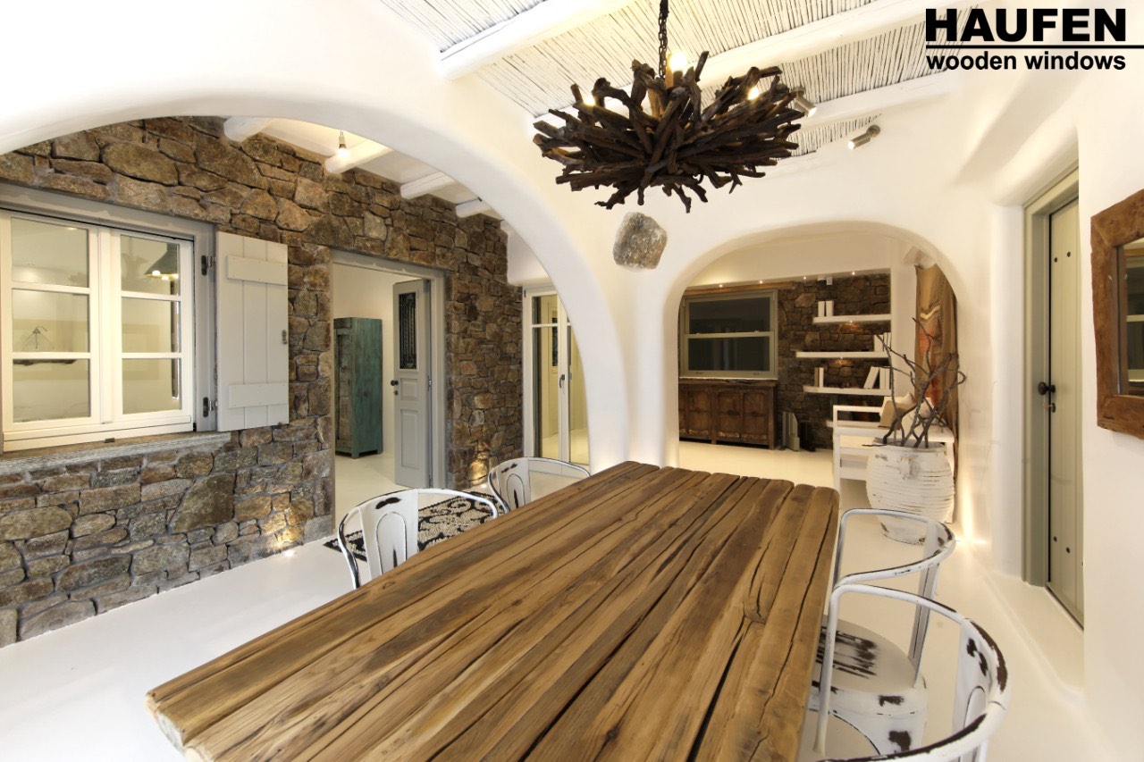 Real representations from houses on an island – mountain – neoclassical, but also minimal aesthetic, come to life in front of you by exposing HAUFEN® wooden windows in a truly unique environment.